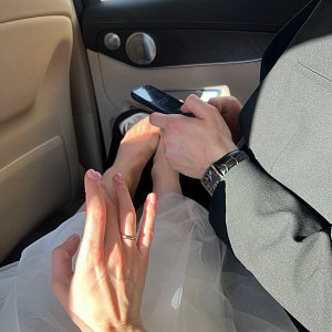 У нас была запланирована песня для выхода. Мы стоим, ждём, и только в этот момент я понимаю, что начинаю нервничать. Хотя казалось бы, уже с кольцом, со штампом. Всё равно стою и нервничаю.