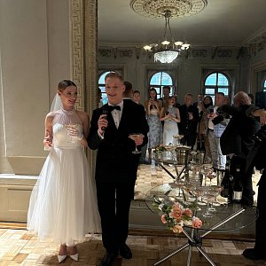 Мы отнесли на стойку документов паспорта. На тот момент мы ещё не расписались, только какую-то бумажку подписали. Проходит немного времени и мне отдают паспорта. Я удивился. А как же «федеральный закон, семейный кодекс, законодательство…»? Мне ответили, что мы уже муж и жена, а сейчас будет формальность. Улыбка с лица не сходила вообще. Очень приятно, друзья были с нами в ЗАГСе, все очень сильно радовались. Потом поехали фотографироваться, а после в студию 21 KULT. Великолепное место, в прошлом особняк Василия Хлудова.