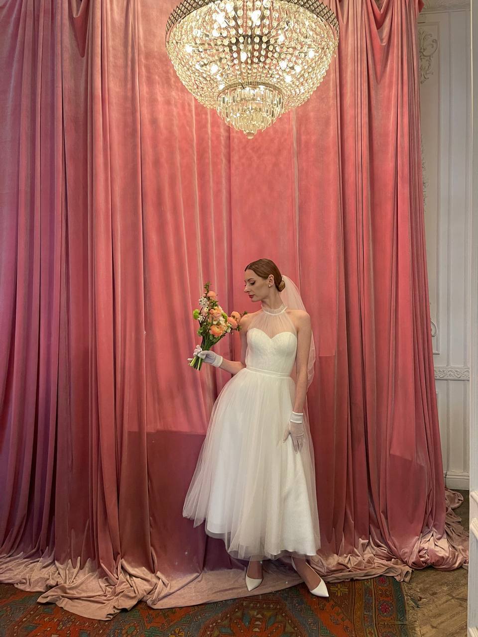 Свадьба была в стиле 60-х, 70-х. За референсы я брала образы Одри Хепбёрн и стилистику фильмов, в которых она снималась. У нас была классическая и элегантная свадьба. Было очень много красивых весенних цветов. Нам очень повезло, что в этом году так тепло в апреле, хотя прямо перед тем, как мы приехали к гостям, пошел ливень. Но, если не ошибаюсь, это что-то хорошее значит, когда в день свадьбы идёт дождик.