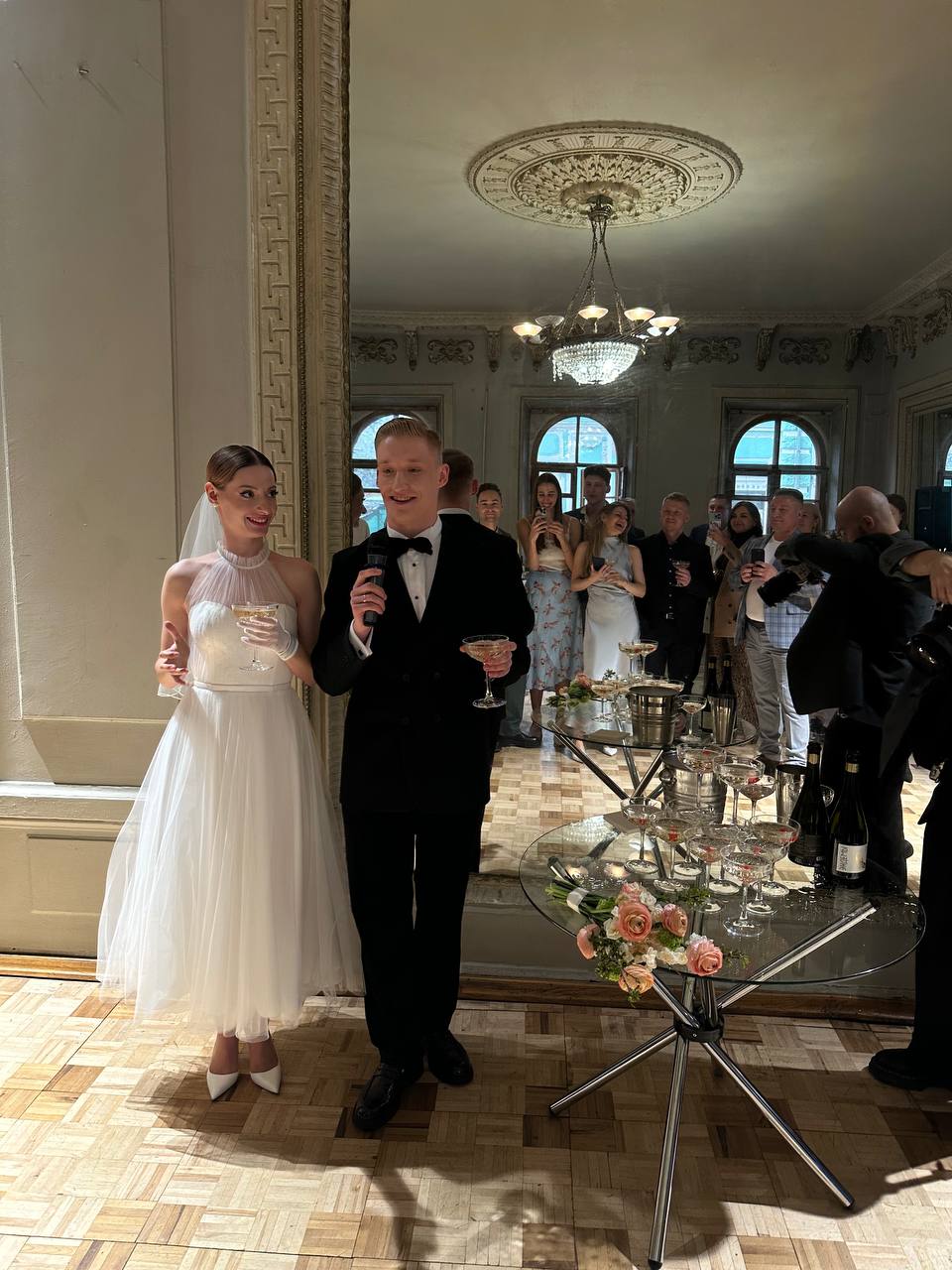 У нас была запланирована песня для выхода. Мы стоим, ждём, и только в этот момент я понимаю, что начинаю нервничать. Хотя казалось бы, уже с кольцом, со штампом. Всё равно стою и нервничаю.