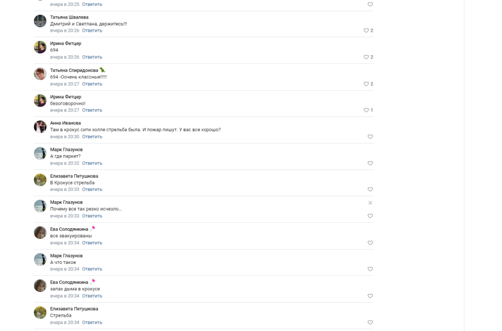 Скрин комментариев к трансляции, в момент ее отключения. Как видно из них, до 20-30 никто ничего не знал о трагедии.